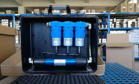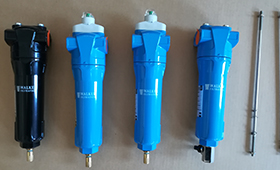 壓縮空氣在進(jìn)入到中空纖維膜干燥器之前,要先除掉壓縮空氣中的液體、固體、油等雜質(zhì)。當(dāng)中空纖維膜干燥器安裝在無(wú)油壓縮機(jī)后面時(shí),需要安裝1微米凝聚過(guò)濾器;如果中空纖維膜干燥器
