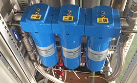 膜干燥器和過(guò)濾器配合使用的時(shí)候,通常是一套由氣水分離器和兩級(jí)凝聚過(guò)濾器用來(lái)出去污染物,達(dá)到所要求的水平。這些過(guò)濾器一般是逐級(jí)過(guò)濾的過(guò)程。舉個(gè)例子,可以滿足要求的凝聚