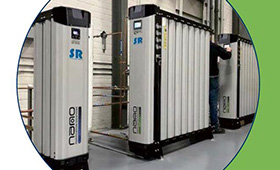 要求SR模塊化超高純制氮機(jī)之前,空壓機(jī)之后,不僅要除水也要除油、除塵,不僅需要安裝氣水分離器、壓縮空氣過濾器?、壓縮空氣精密過濾器、SR模塊化吸干機(jī)、除塵過濾器,才能達(dá)到SR模塊
